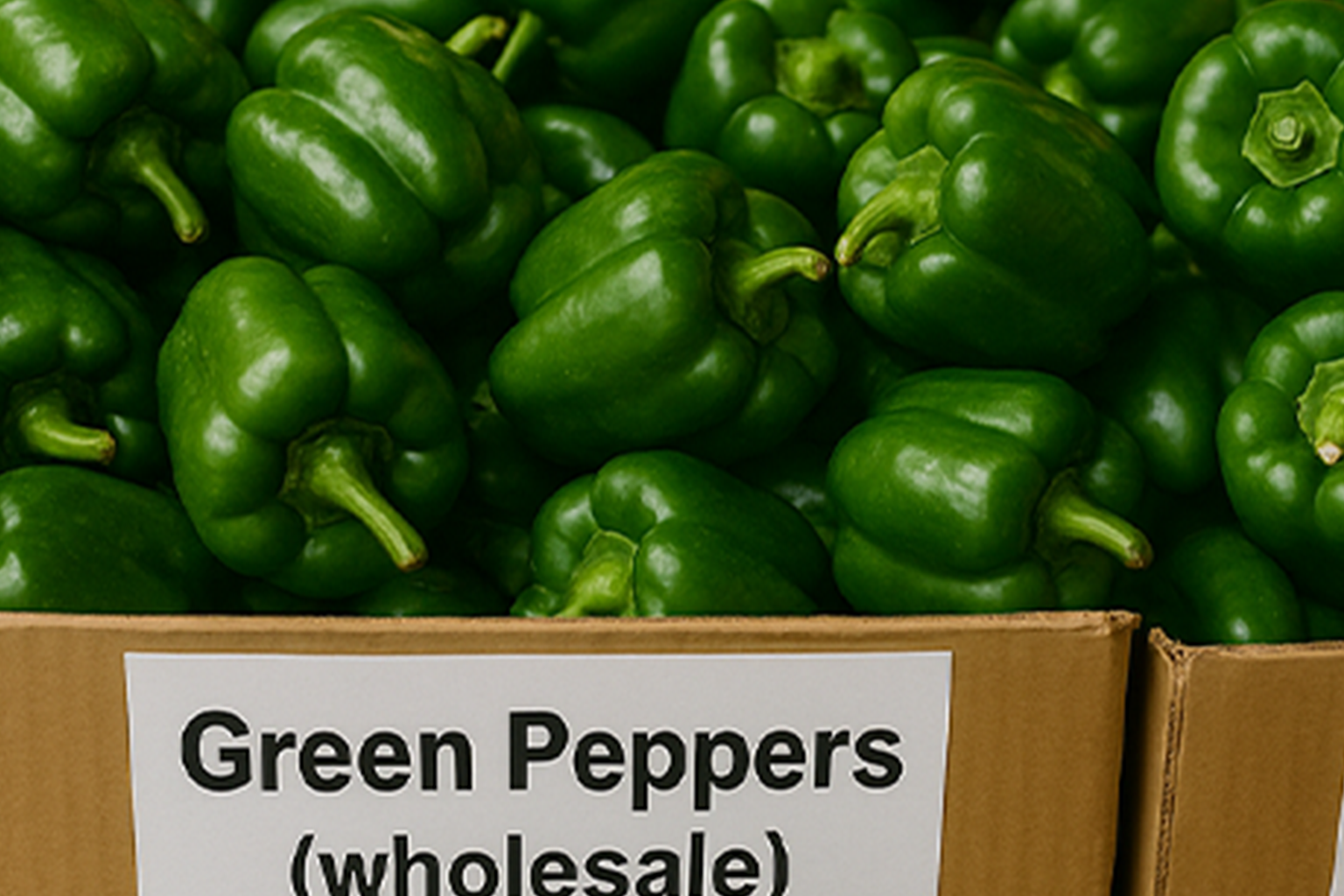 Fresh bell peppers in bulk crates. Suitable for cooking or resale.